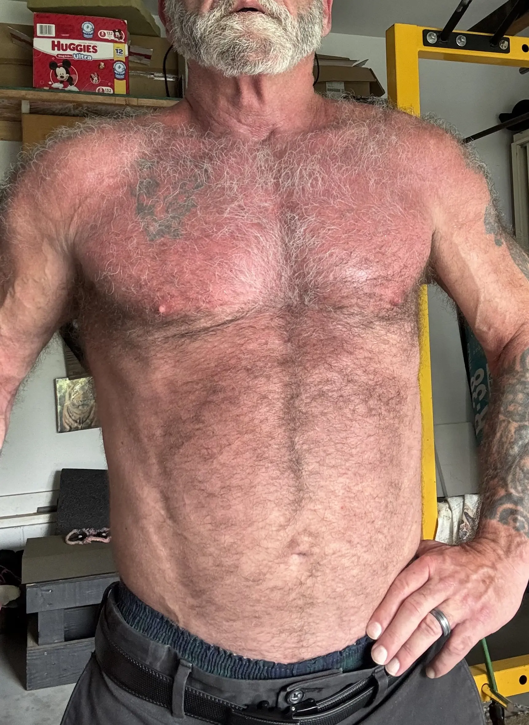 After my mid summer shearing. To include head. Getting a bit of size back on my quads/glutes/hamstrings. My right calf is permanently atrophied and my left is close behind due to extreme nerve damage.