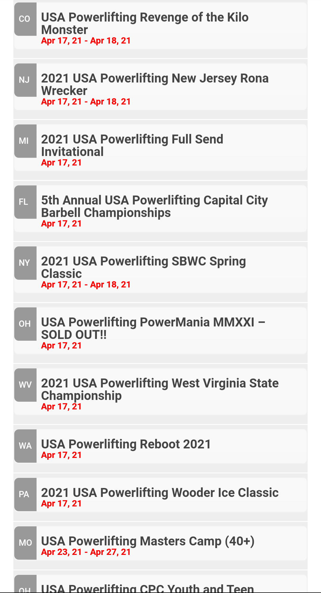 This is the calendar for April 2021 for USA Power Lifting I know that we have power lifters here at ugmuscle.