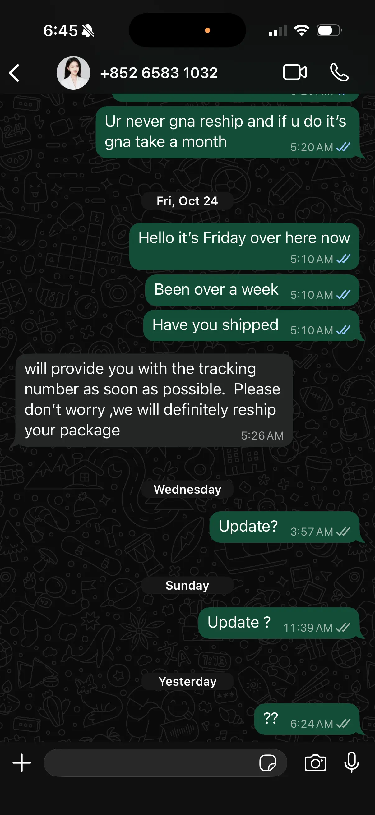 I asked about this situation because I was assuming they were a scam so I take the answers from them with that in mind. The response was they have no orders from anyone on this forum of 15k. I did explain I think it’s from someone off the forum but that’s why she said please have them contact her. She said she doesn’t know which order or who you are referring to. (I am not arguing or denying anything you are saying I don’t know the situation I’m only passing what was told to me)