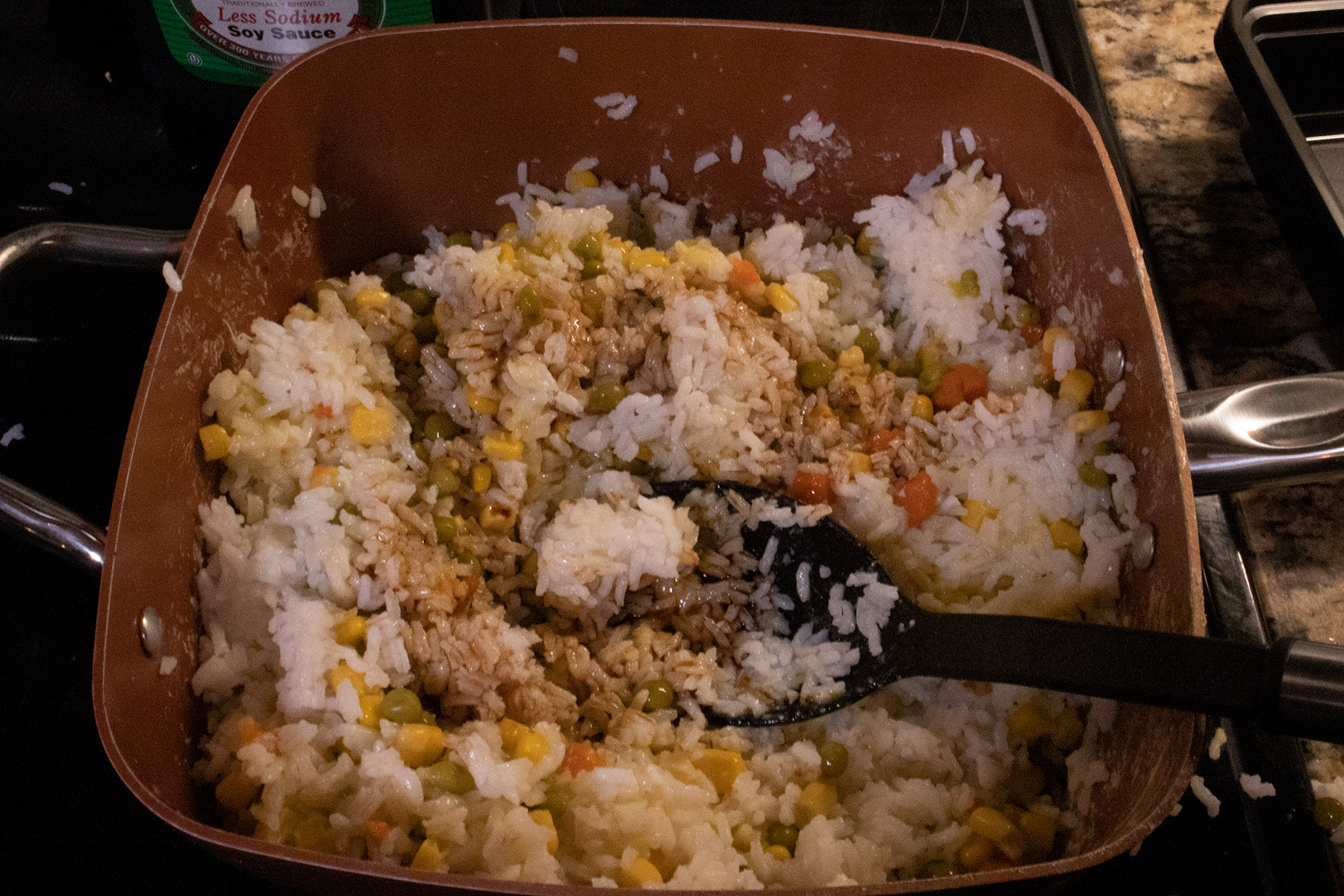 Yeah I would say my pan really isn’t the greatest to get a real cook on the rice. The only true way is to have a wok and one of those crazy looking jet burners. I have been able to use cast iron, but it’s a pain to clean afterwards. But if you are looking for something a bit different from the usual meals, this is worth having around as a quick microwave dish.