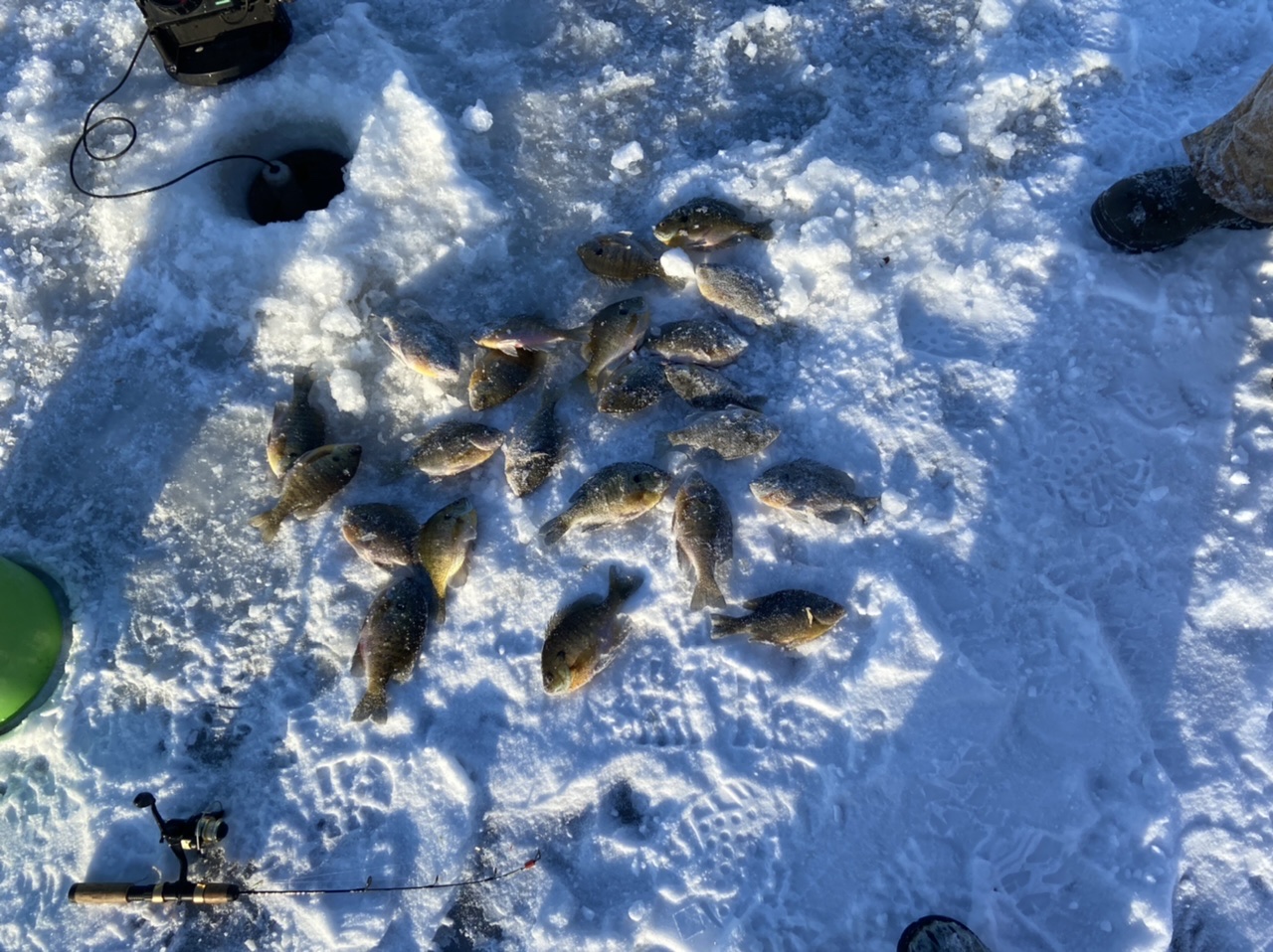 Just bluegill crappie and occasional perch. But super clean water no one else around and always catch a meal.
