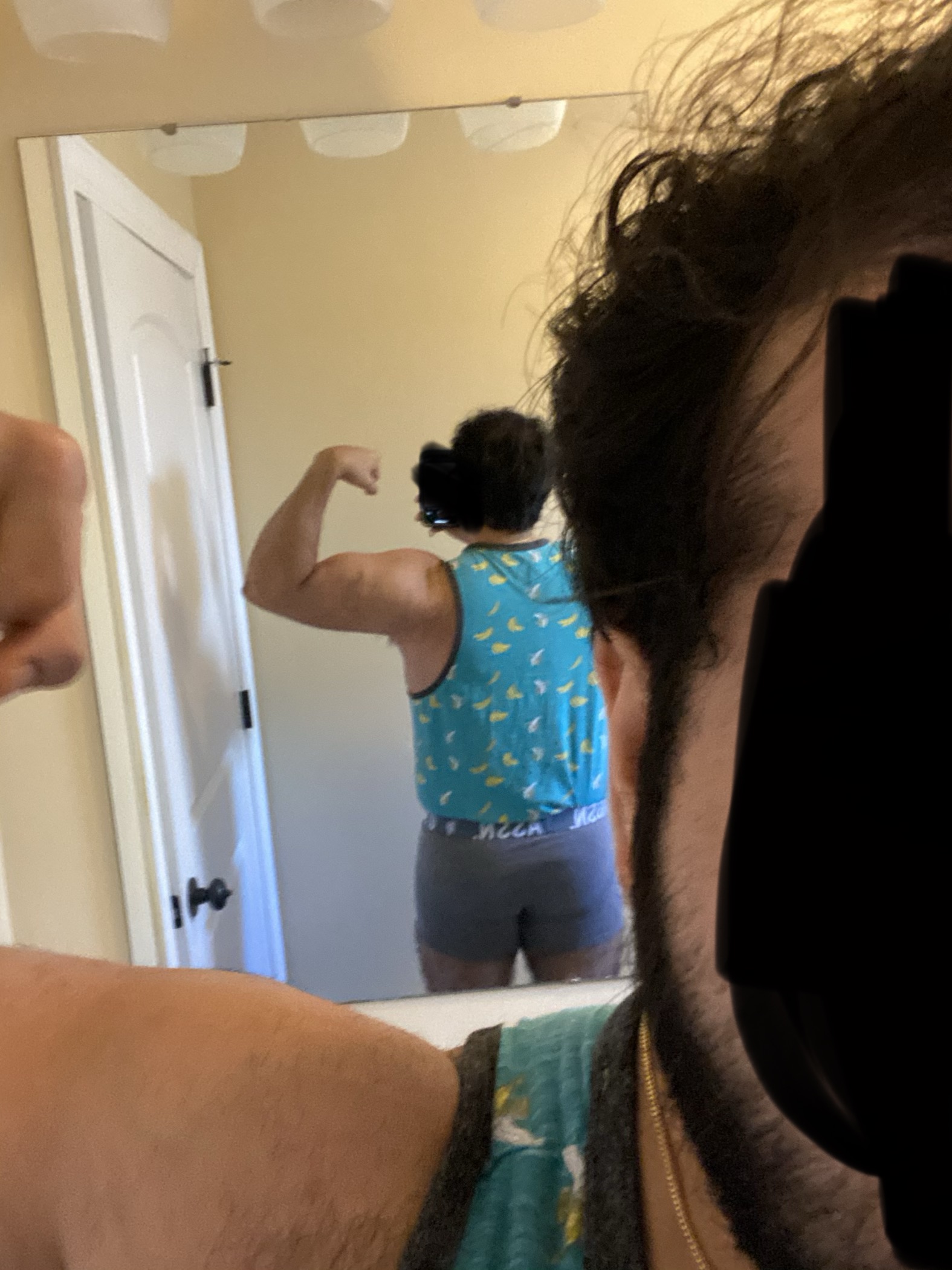 You have some big arms and shoulders just keep going your just getting started on your cycle you will start to see more gains coming now and keep the diet heavy in protein real protein no powder.