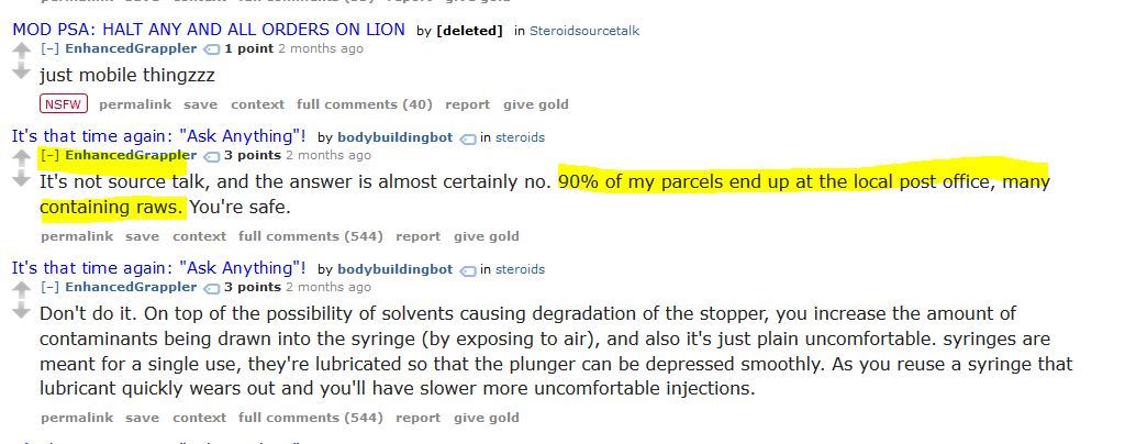 This one is an interesting one involving top moderator of Reddit Steroid Source Talk sub aka SST. What was alleged was a moderator called u/EnhancedGrappler deleting posts of another well trusted source on another board. The source had also reported to u/Polar_Wolf that a new email used just for a reddit account and not promoted was immediately emailed a source list from a supplier for raws. This means the reddit mods were either sources themselves or selling info from the mod mail.