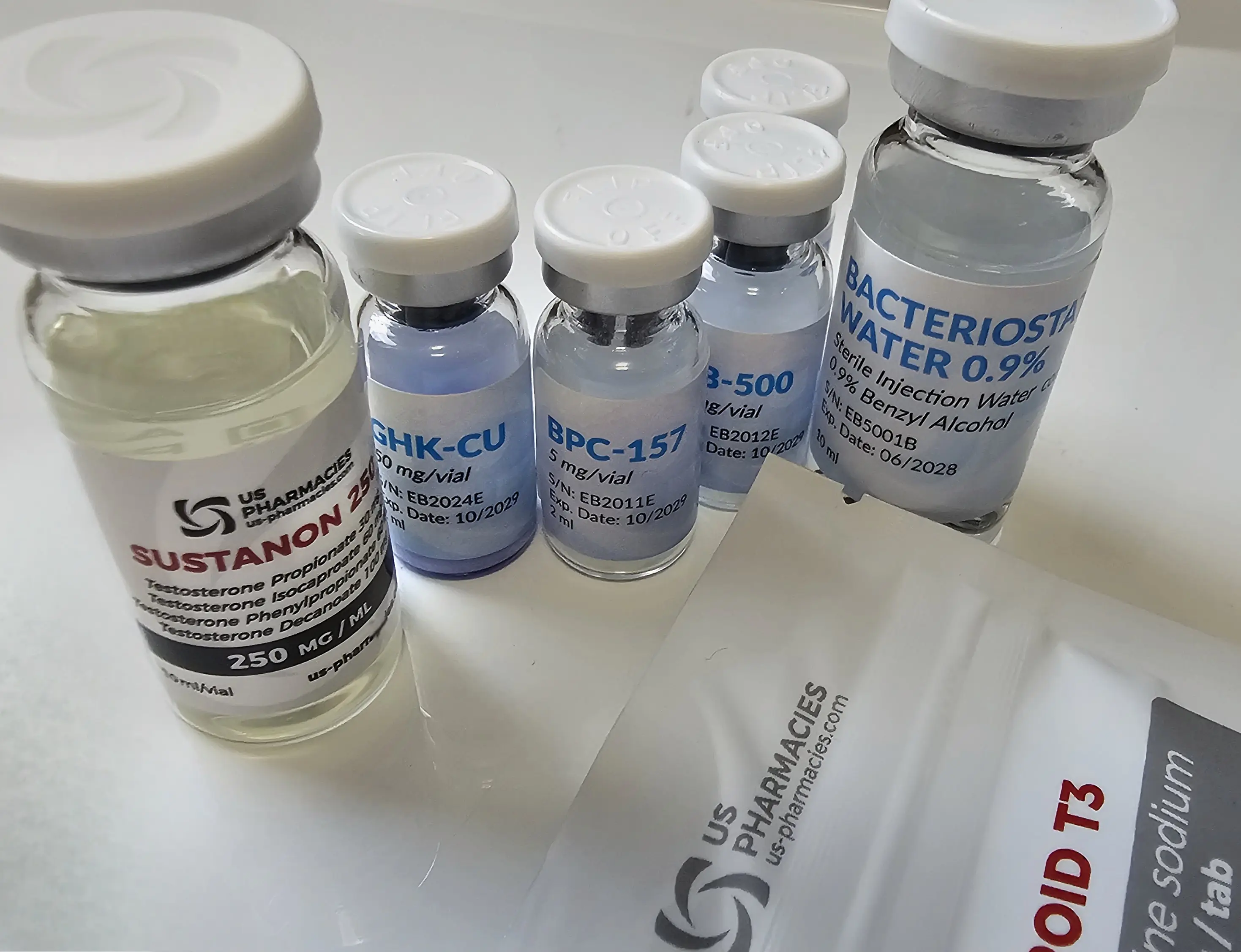 Back to basics and focus on my knee injury. Just a few of the items I got. Packed great in boxes. Fast as always. Will be running BPC157, TB500 and GHK-CU for next 3 months. Low dose TRT levels sustanon.